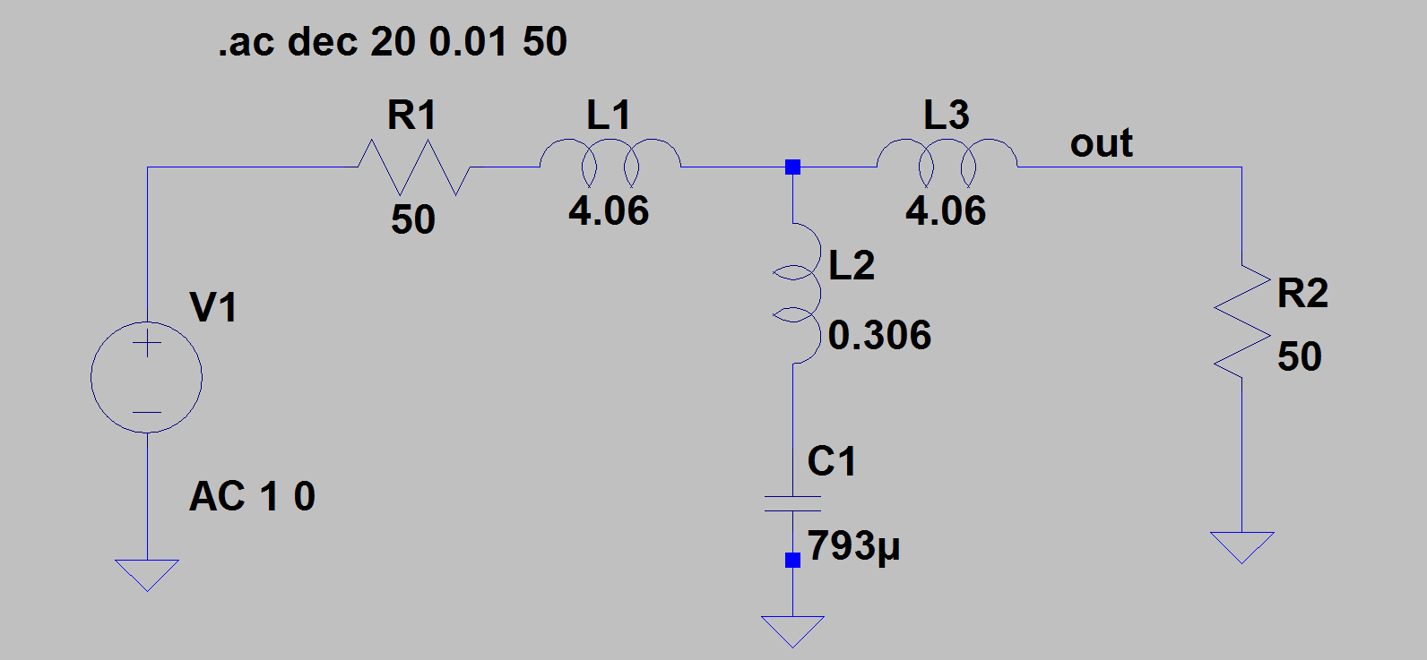 La synthèse d'un filtre en forme passive peut conduire à un circuit comme celui-ci: