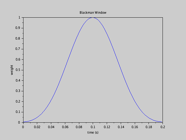 Illustrons cela avec deux cas extrêmes: la fenêtre rectangulaire et la fenêtre Blackman.  Cette dernière a l'aspect suivant: