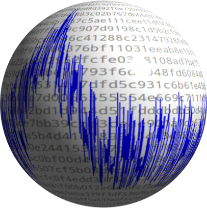 La boule couverte de nombres hexadécimales aléatoires est une représentation symbolique en électronique numérique de l'univers holographique et de l'entropie limite d'un trou noir (théorie de l'entropie Bekenstein-Hawking), et un signal (électronique) bruité contenant de l'information utile.
