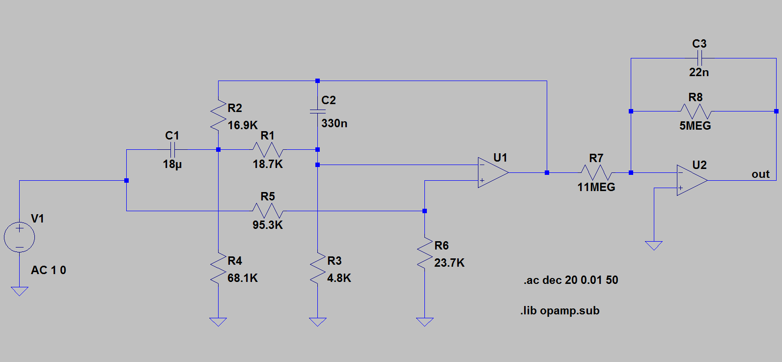 Si nous voulons considérer un filtre actif, la réalisation du filtre Tchebychev I peut prendre la forme suivante:
