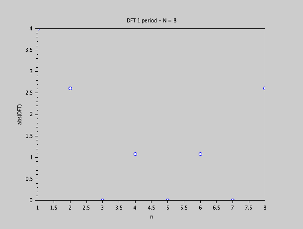 nous allons observer un comportement similaire:  Les valeurs DFT sont: